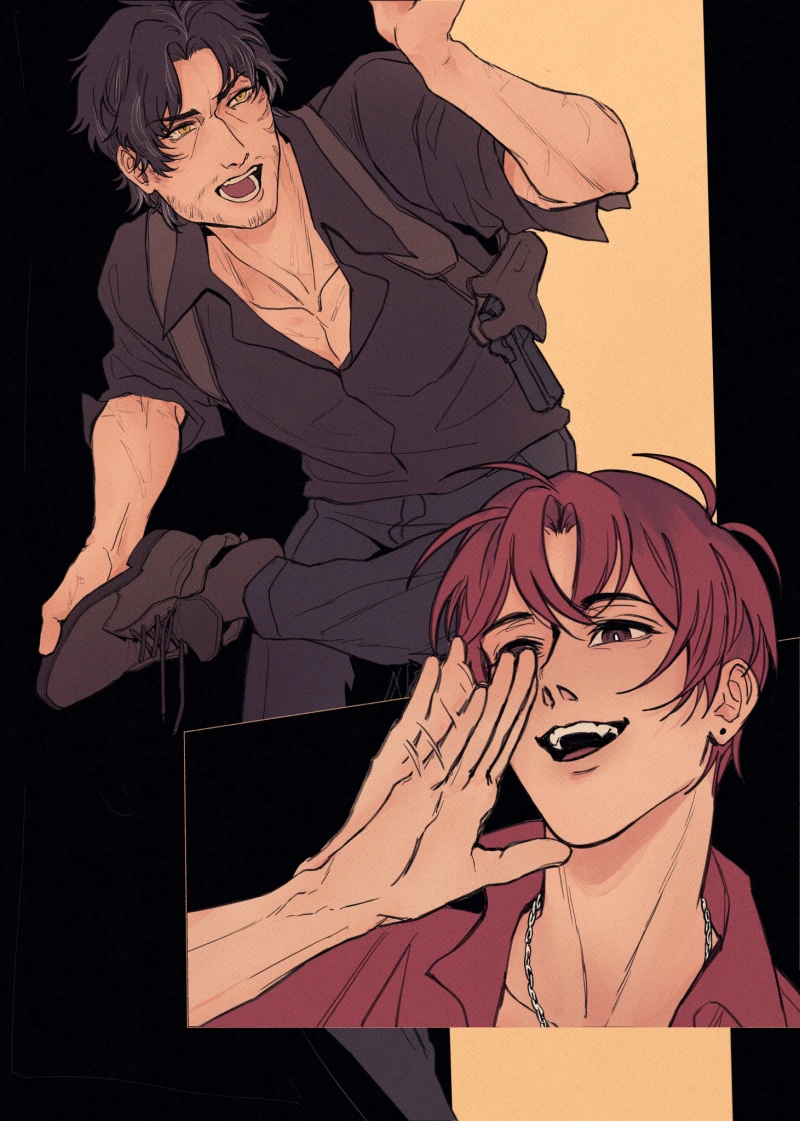 He reached around to hand it over, but the brat didn't just grab it—he slid into the space between Hu Jian and the wall, where the water wouldn't fall straight on him. It gave Hu Jian a faceful of a foxy grin: playful, with a hint of canines, and horny. The showerhead was switched off.